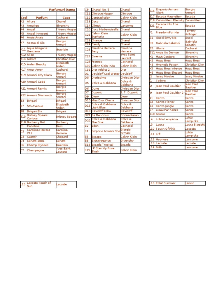 D P Perfumum Liste Deutsch