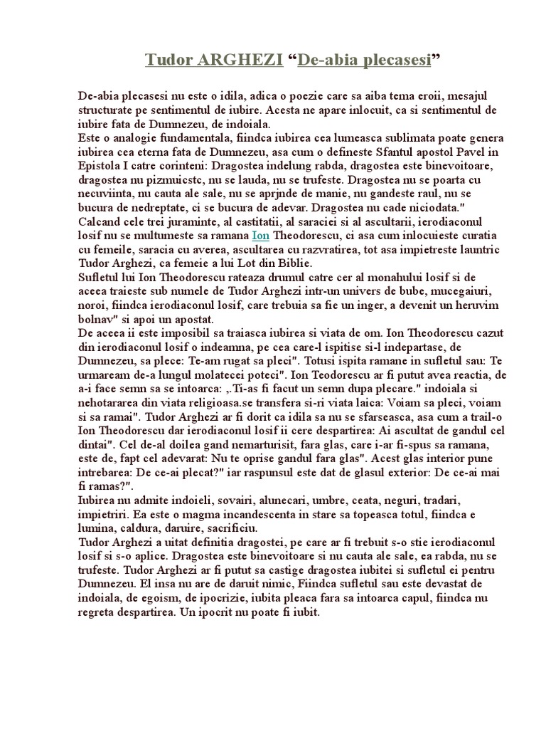 Acesta ne apare inlocuit ca si sentimentul de iubire fata de dumnezeu de indoiala. De abia plecasesi de tudor arghezi comentariu tudor arghezi testament poezia testament de tudor arghezi nu ţi voi lăsa drept bunuri după moarte decât un nume adunat pe o carte în seara răzvrătită care vine de la străbunii mei până la tine prin rapi şi gropi adânci suite de bătrânii mei pe br acir. De abia plecaseși poezie de tudor arghezi. Comentariul poeziei deabia plecasesi de tudor arghezi mai jos o sa aveti mai multe rezultate pentru cautarea comentariul poeziei deabia plecasesi de tudor arghezi.