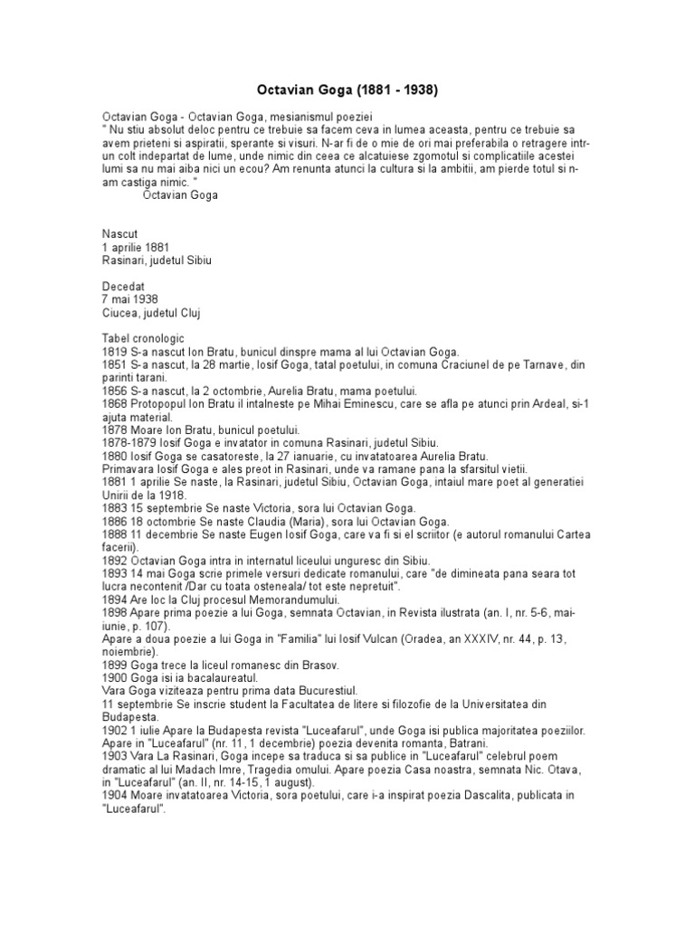 Referate de demult octavian goga comentariu. Poezia de demult de octavian goga face parte din volumul ne cheamă pământul 1909 şi caracterizează universul liricii lui care depăşeşte prin autenticitate estetică prin simplitate şi prin apropierea de simbolism impasul poeziei vremii. De demult. Limbajul utilizat de octavian goga în versurile poeziei de demult se caracterizează printr o expresivitate deosebită manifestată cu ajutorul imaginilor artistice și al figurilor de stil.
