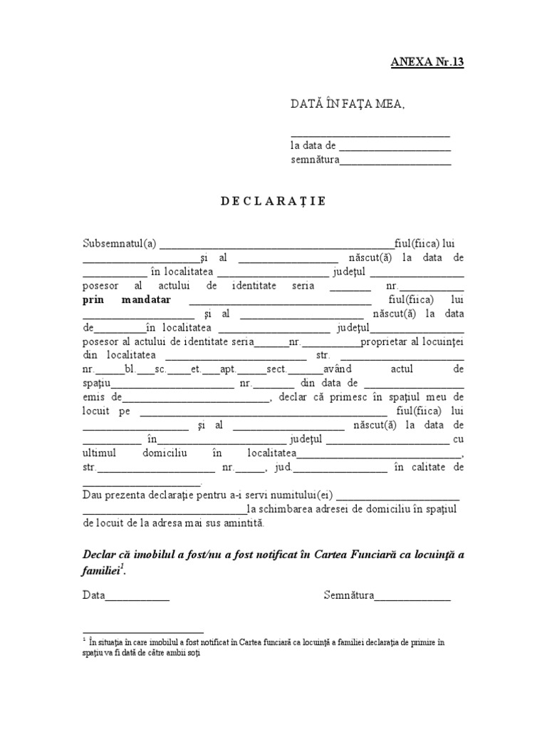 Mai mult decat atat declaratia trebuie sa contina numarul de persoane care locuiesc efectiv la adresa respectiva arată a vocatnet ro. Pal emeric 14 februarie 2019. Formular preluat de pe pagina de internet a inspectoratului naţional pentru evidenţa persoanelor www. Anexa 12 din hg 1375 2006 declaratie de luare in spatiu locativ anexa 13 din hg 1375 2006 declaratie de luare in spatiul locativ a proprietarului prin mandatar anexa 14 din hg 1375 2006 declaratie solicitant conform art 27 lit c din o u g.