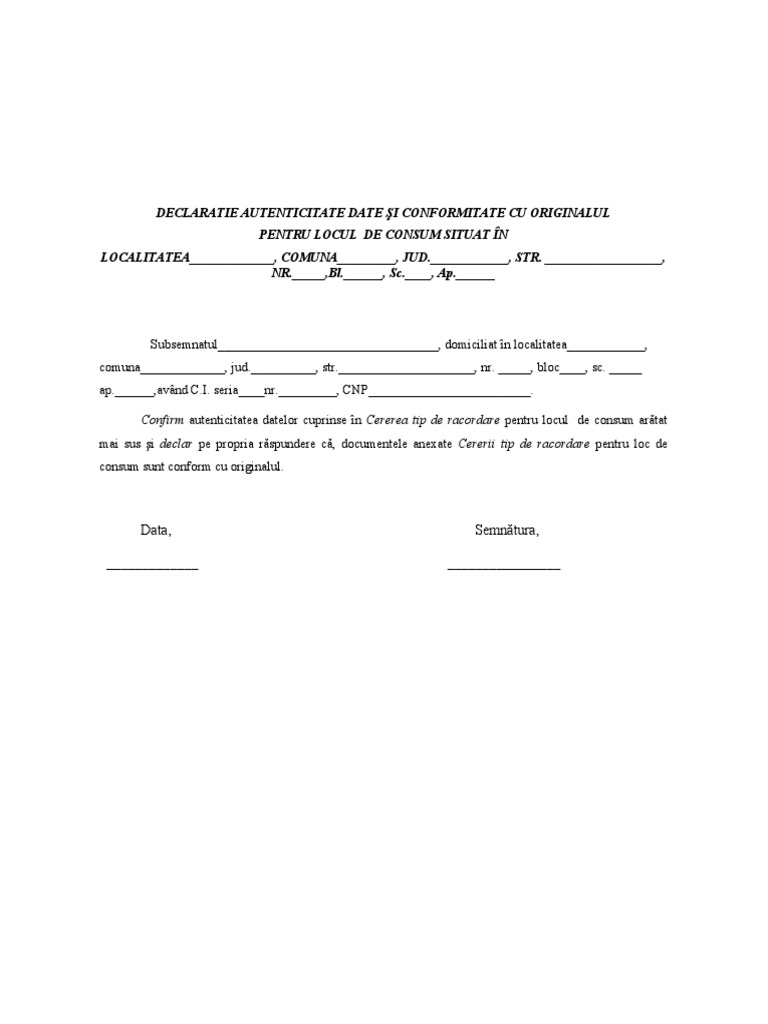 Declaratie Pe Proprie Raspundere Privind Autenticitatea Documentelor