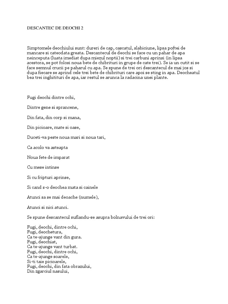 Când eşti bolnav când suferi de dor sau când ai copilul deochiat repetă descântecul auzit la bătrânele din satul bunicilor. Vezi aici descântece de dragoste și de ceas rău. Indiferent ca vrei sa cuceresti inima unui baiat sa intalnesti sufletul pereche sau sa ti imbunatatesti relatia actuala atrage energiile pozitive de partea ta. Eu cu soc te solomonesc.