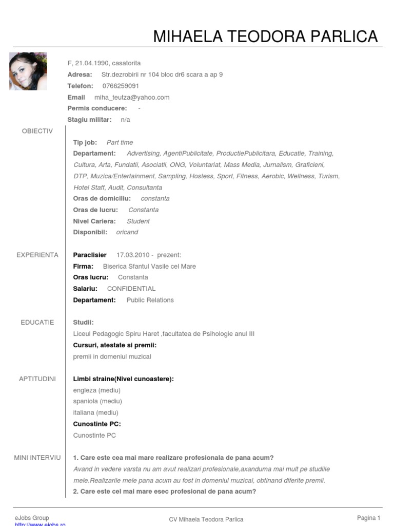 Despre Mine Cv Exemplu