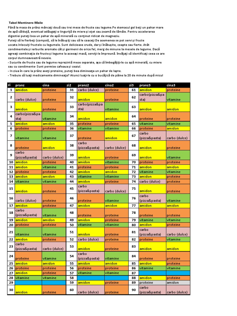 Se respecta un interval regulat intre mese. Slabeste 10 kilograme in 90 de zile. De mai bine de un an foarte multa lume din romania care vrea sa scape de kilogramele in plus adunate slabeste cu dieta rina 90. Dieta consta in 90 de zile de regim disociat iar daca vrei sa slabesti trebuie sa respecti intocmai dieta rina pe zile principiul de baza consta in combinarea corecta a alimentelor si respectarea ceasului biologic uman.