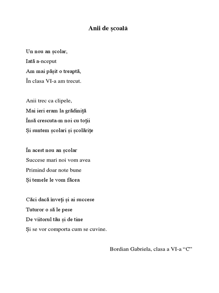 Din nou la scoala de radulescu rebeca prima zi de scoala este o incantare. Clopotelul suna de sandu madalina clopotelul suna jocul sa l lasam asezati in randuri in clasa intram. Andi la data de dum 14 feb 13 03. Poezii scoala copii daca copilul tau a ajuns la varsta ghiozdanului in spate de ce nu ai invata alaturi de el cele mai frumoase poezii de scoala pentru copii.