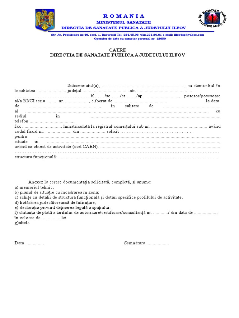 Date financiare şi juridice actualizate în timp real despre firmele din românia. Documente necesare aviz sanatate publica bucuresti ilfov si in tara cerere tip date de contact taxa aviz sanatate acte necesare pentru obtinerea avizului pentru sanatatea publica. Directia de sanatate publica ilfov. Verifică dacă datele de contact ale companiei sunt sincronizate pe intenet reţele sociale şi aplicaţii de navigaţie.