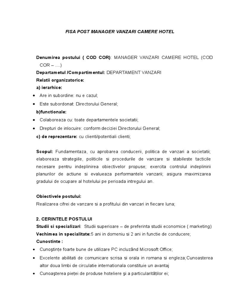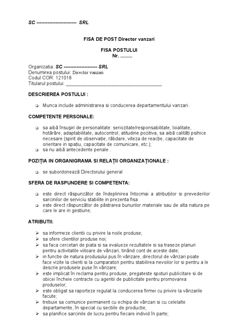 Director vanzari cod cor. 112015 director general adjunct regie autonoma 112016 director control risc 112017 director comercial 112018 director vanzari 112019 director director adjunct inspector sef 112020 director economic 112021 director magazin 112022 sef corp executori bancari 112023 director sucursala 112024 director tehnic. 3 pozitia in cor cod. Vă oferim fişa postului pentru ocupația de director vânzări și fişă pentru evaluarea anuală a performanțelor individuale ale ocupantului postului de director vânzări gata redactate în format editabil doc descărcabile direct din contul dvs. Cor 2020 ocupatii din grupa de baza 1120 directori generali directori executivi si asimilati.