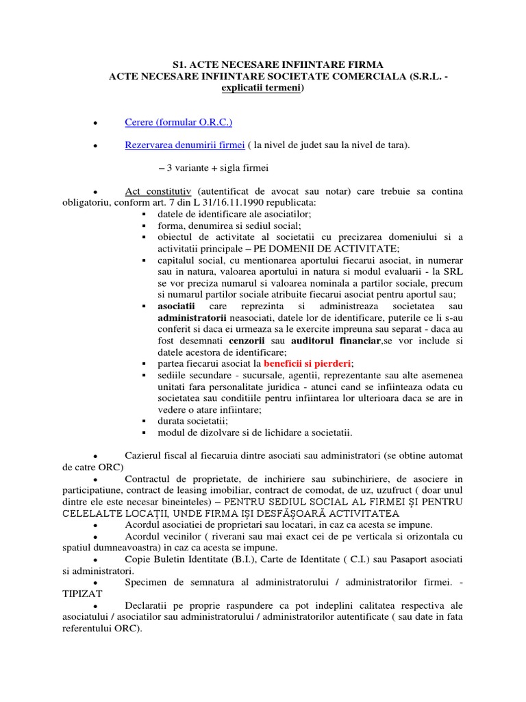 Documente Necesare Infiintare Firma