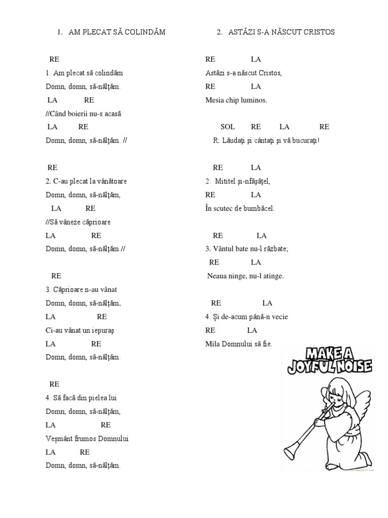 X 2 caprioare n au vanat domn domn sa naltam. Dom dom sa naltam dom dom sa naltam g d d7 am plecat sa colindam g d g dom dom sa naltam d7 g cand boierii nu s acasa d g dom dom sa naltam au plecat la vanatoare sa vaneze caprioare caprioare n au vanat si au vanat un iepuras sa faca din pielea lui vesmant frumos domnului. Pe de altă parte nu am auzit până acum de vreun colind românesc care să se refere la o clădire biserică sau dom. X 2 si au plecat la vanatoare domn domn sa naltam.