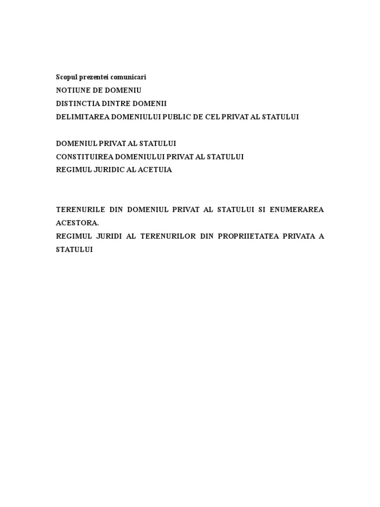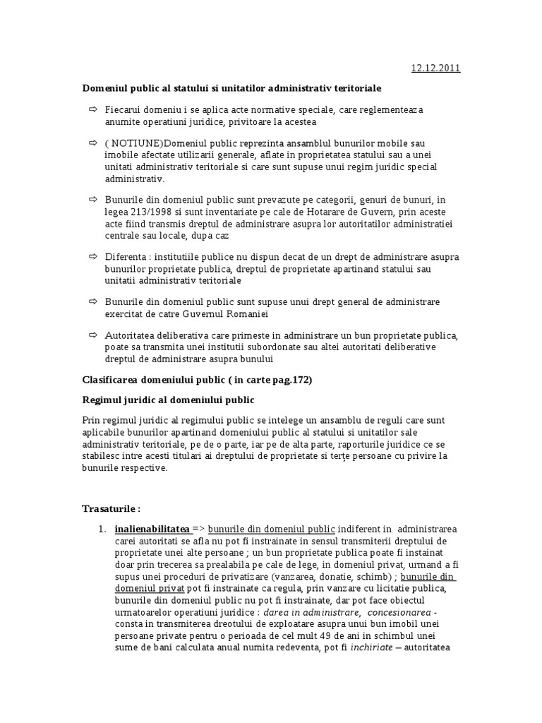 Apartin domeniului public terenurile pe care sunt amplasate constructii de interes public piete cai de comunicatii retele stradale si parcuri publice porturi si aeroporturi terenurile cu destinatie forestiera albiile raurilor si fluviilor cuvetele lacurilor de interes public. Definitie termen juridic dictionar juridic domeniul public al statului definitie. Pentru a putea organiza si asigura buna functionare a serviciilor publice statul colectivitatile locale si autoritatile publice ale acestora au nevoie de bunuri materiale a caror diversitate a inregistrat pe parcursul timpului o continua crestere. 935 din 13 octombrie 2004 s a aprobat trecerea din domeniul public al statului şi din administrarea agenţiei naţionale pentru resurse minerale în domeniul privat al statului a 33 de bunuri constând în conducte de transport gaze concesionate s n t g n.