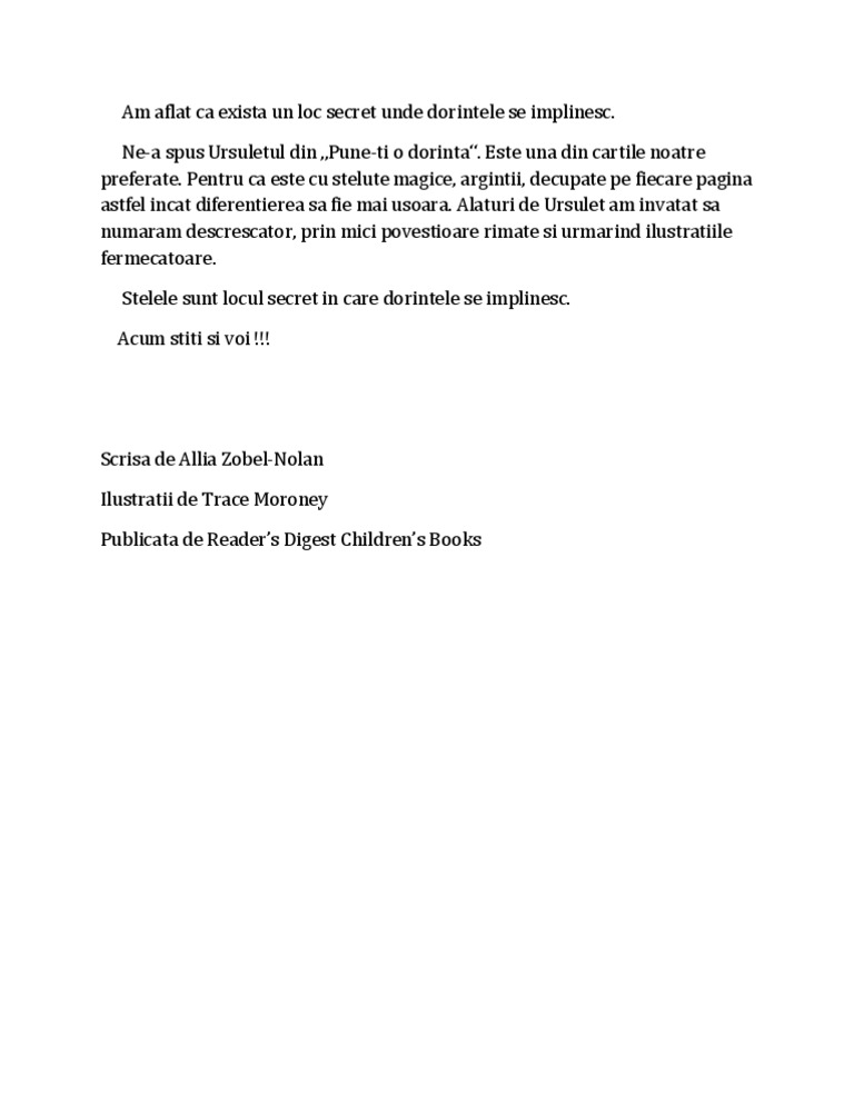 Dorintele scrise se implinesc. şi cele pe care ni le dorim din tot sufletul dar şi cele pentru care păstram o fărâmă de speranță necrezând că vreodată dorința se va împlini. Pentru a înţelege ce vreau să spun te rog dă ţi voie să testezi modul în care tu însuţi colaborezi cu universul. Se spune ca de craciun dorintele se implinesc. Scrieţi că dorinţele cele bune nu se împlinesc întotdeauna.