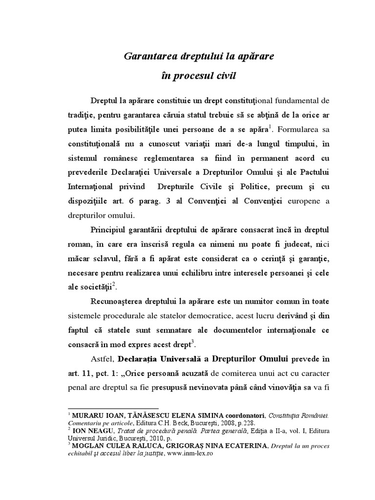 Dreptul la aparare cedo. Imposibilitatea tatălui de a obține realizarea deplină a dreptului de vizită a copilului încalcă dreptul la respectarea vieții de familie. Ele pot sa ia cunostinta de cuprinsul dosarului sa propuna probe saread more. Moartea nu poate fi cauzată cuiva în mod intenţionat decât în executarea unei sentinţe capitale pronunţate de un tribunal când infracţiunea este sancţionată cu această pedeapsă prin lege. 6 dreptul la un proces echitabil art.