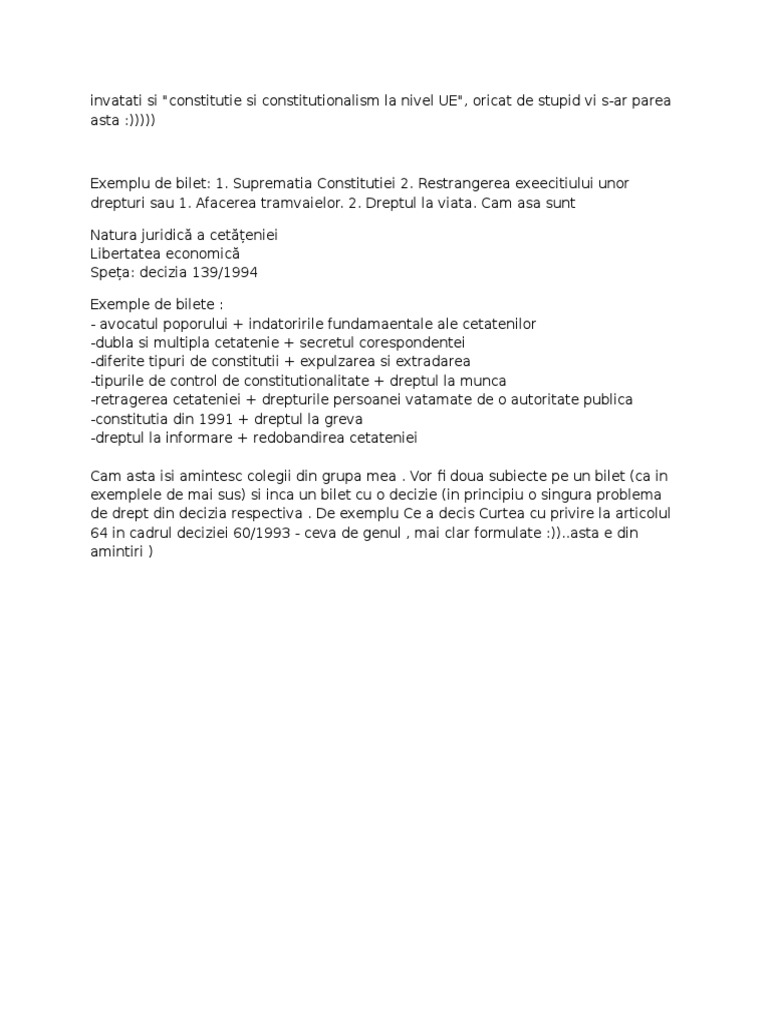 Dreptul la munca constitutie. 2 orice persoana este libera in alegerea locului de munca si a profesiei meseriei sau activitatii pe care urmeaza sa o presteze. Articolul 36 dreptul de vot articolul 37 dreptul de a fi ales articolul 38 dreptul de a fi ales în parlamentul european articolul 39 libertatea întrunirilor articolul 40 dreptul de asociere articolul 41 munca şi protecţia socială a muncii articolul 42 interzicerea muncii forţate articolul 43 dreptul la grevă. Legea stabileşte condiţiile exercitării. Prin urmare dreptul la identitate constituie un drept individual nu colectiv şi de aceea în temeiul său nimeni nu poate revendica un privilegiu sau oricare alt interes.