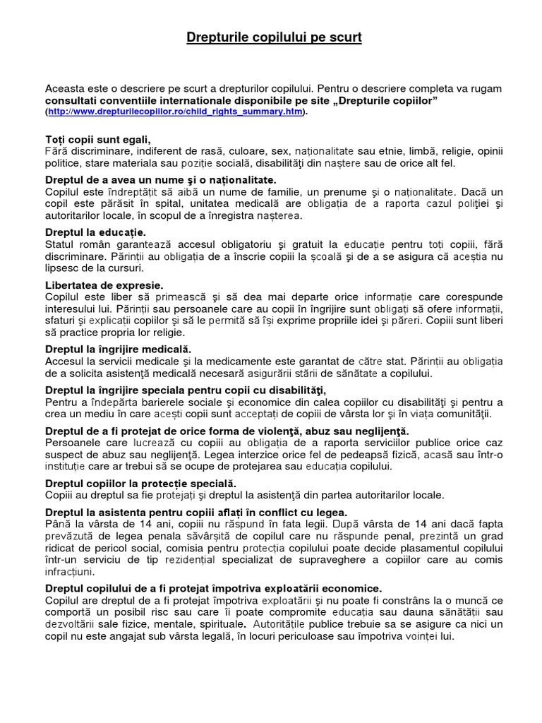 Drepturile Copilului Pe Scurt