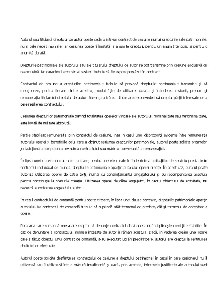 21 din legea dreptului de autor prevede ca autorul unei opere originale de arta grafica sau plastica ori al unei opere fotografice beneficiaza de un drept de suita reprezentand dreptul de a incasa a cota din pretul de vanzare obtinut la orice revanzare a operei ulterioara primei instrainari de catre autor precum si dreptul de a fi informat cu privire la locul unde se afla opera sa. Arhiva contine 1 fisier doc de 13 pagini. Ai nevoie de doar 5 puncte. Instituția dreptului de autor este instrumentul de protecție a creatorilor și a operelor lor.