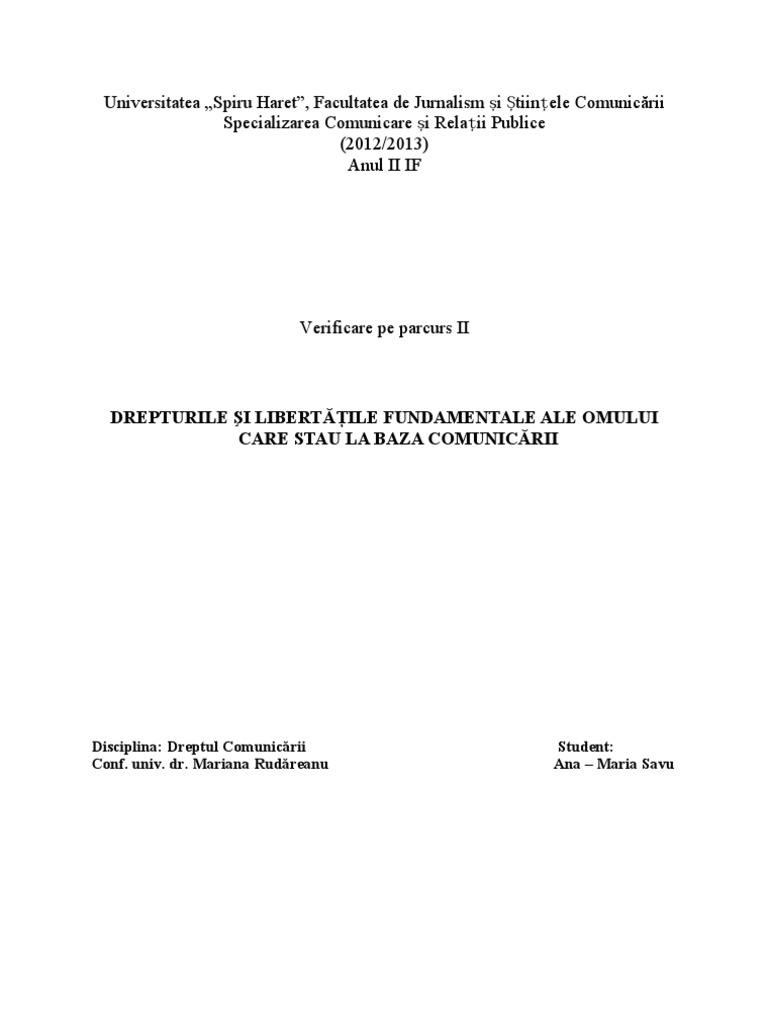 Drepturile Si Libertatile Fundamentale Ale Omului