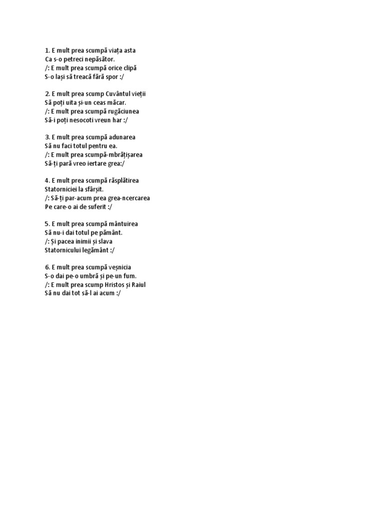 Enjoy the videos and music you love upload original content and share it all with friends family and the world on youtube. E mult prea scump cuvantul vietii sa l poti uita si un ceas macar e mult prea scumpa rugaciunea sa i poti nesocoti vreun har. E mult prea scump cuvântul vieţii să l poţi uita şi un ceas măcar. E mult prea scumpă orice clipă s o laşi să treacă fără spor.