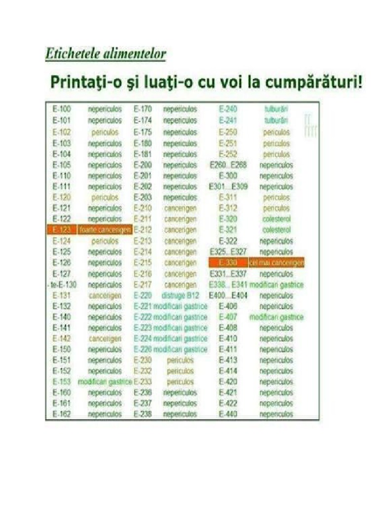 By redactia sfat naturist published octombrie 7 2016 updated aprilie 6 2017. Astfel s au întocmit liste pozitive si negative cu e urile continute în produsele alimentare. Are efecte neurotoxice si poate provoca migrene si crampe. Multi dintre acestia erau.