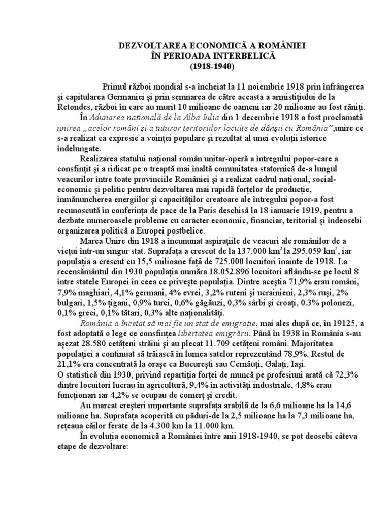 Economia romaniei in perioada interbelica. Cifrele s au schimbat o parte din probleme au ramas. Perioada interbelică desemnează intervalul de 21 de ani între cele două războaie mondiale 1918 1939. Acum se concretizează cele trei ideologii care au schimbat fața lumii. Anisoara popa iti recomandam sa te uiti bine pe extras si pe imaginile oferite iar daca este ceea ce ti trebuie pentru documentarea ta il poti descarca.
