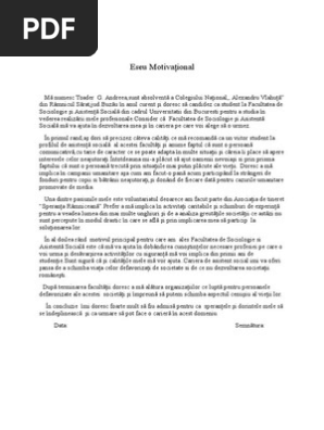 Puteti gasi foarte multe referate accesand categoriile din partea dreapta despre eseu motivational admitere sociologie uita te mai jos si o sa gasesti cele mai relevante rezultate pentru cautarea eseu motivational admitere sociologie. Model de eseu motivaţional pentru înscrierea la ase 2018 zilele acestea am fost întrebată de multe persoane cum se face un eseu motivaţional pentru înscrierea la academia de studii economice. 0 0 au considerat acest document drept nefolositor bifați acest document drept nefolositor. Carusel înapoi carusel înainte.