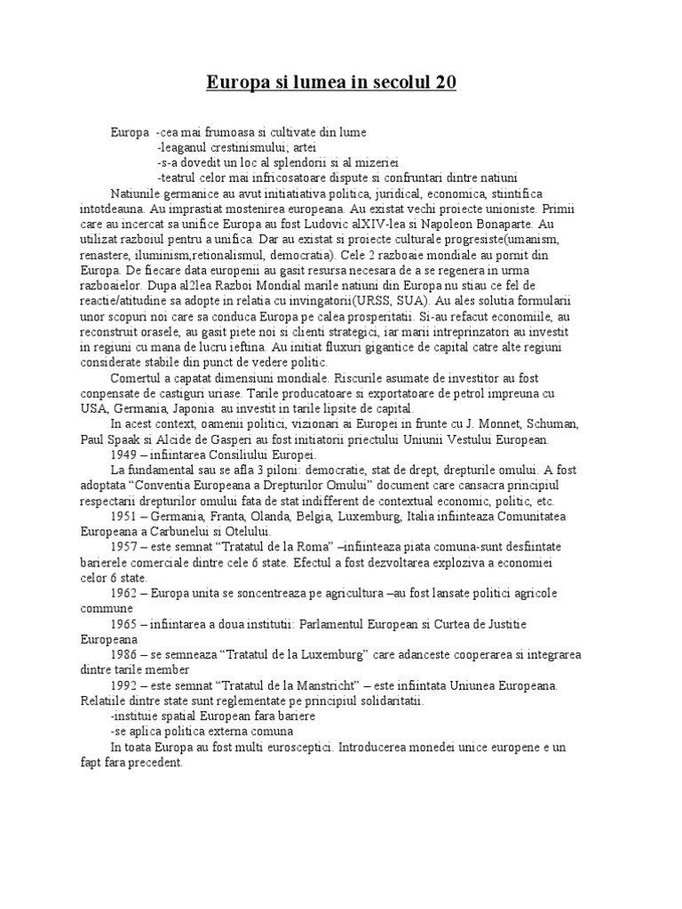 Europa In A Doua Jumatate A Secolului 20 Eseu