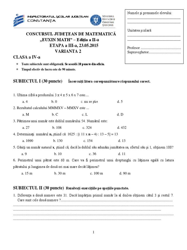 Abagiu mihai stelian școala gimnazială nr 30 gh. Acest site folosește cookie uri. Subiect clasa a ii a comorile condeiului et 1 2017 2018 subiect clasa a iii a comorile condeiului et 1 2017 2018 subiect clasa a iv a comorile condeiului et 1 2017 2018 barem clasa a ii a comor. Concursul de matematica euxin.